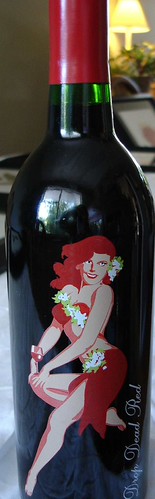 For the wine I chose Kestrel Vintners Drop Dead Red, 2nd edition. Okay, now this is really odd. My bottle is called Drop Dead Red, but when I look up this wine on their site it’s called Lady in Red and it shows the exact same bottle and label except that where mine says Drop Dead Red their’s says Lady in Red! I wish I had seen this a couple weeks ago. I originally came across this wine a year or so ago while scanning the wine selection at Costco. The label catches your eye and upon further examination I noticed that this was from Kestrel, one of my favorite Washington wineries. They mostly produce high-end, big luscious wines and so I was interested in seeing what this second label wine priced at about $15 would be like. Once I tasted it, I went back for more! And it’s become one of my "house" wines – I try to keep a couple bottles around as it’s good enough for company but also fits my "have a little glass on the deck" expectations. Anyway, a couple of weeks ago while shopping at Costco, Kestrel was there selling some of their higher end wines at great prices – just a one shot opportunity that I took advantage of. And I spoke at some length with the guy (I didn’t think to ask exactly who he was) about this wine. If only I’d known that it had two names! I would have liked to know why. Anyway, either way it’s become a personal favorite. (I wonder if I should hold on to this bottle??)