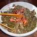 R brought Collard Greens with Red Onions and Bacon. How can you go wrong with that combo? The smoky bacon and sweet onions were nice contrasts to the bitter greens. I’d actually like to have them alongside scrambled eggs sometime. K chose macaroni and cheese as her offering, but not just any macaroni and cheese! She used a recipe from Grand Central Bakery that included five types of cheese! Yum! It made a huge dish and this would be great as just the main dish for your meal accompanied by a little salad (to make you feel less guilty…) and a nice glass of wine.