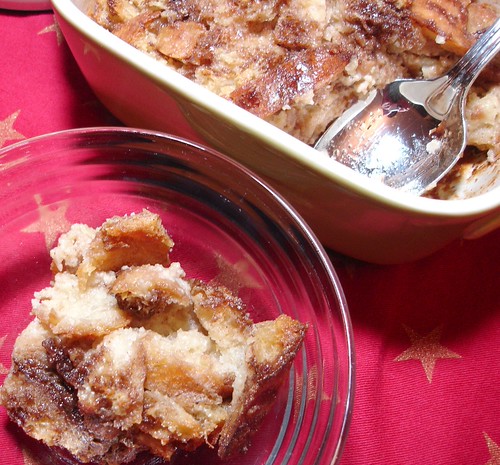 I’ve never made bread pudding before. I think because it took me awhile to like it. Or maybe it was just that I didn’t really care for the first kind I had and it took me awhile to try it again and realize that I did like it. I finally was motivated to make it on my own since I had plenty of leftover bread from my party last week. (More about that coming soon!) For a first attempt I thought it was pretty good, although I had a little too much liquid and so it was taking forever to cook through – I finally gave up waiting and ate some. :-) It tasted good – good enough that I’m ready to work on making it again. I’ll be trying again in a day or two and I should have a recipe I’m ready to share then.