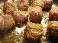Form lamb mixture into balls about the size of golf balls. Place in pan and brown on all sides. When completely browned, place pan into oven and bake for 10 minutes.