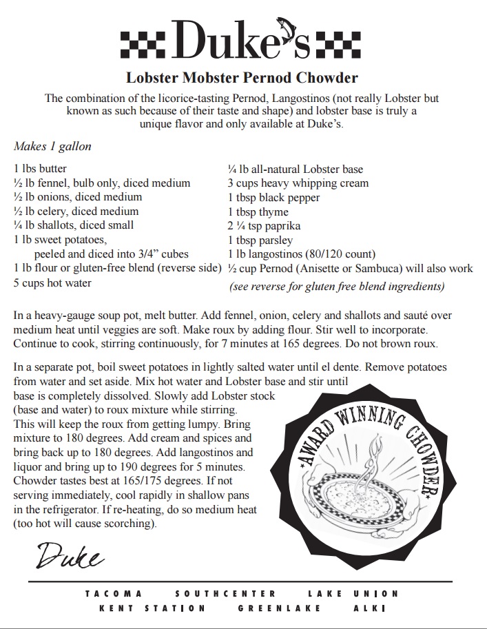 If you haven’t been to Duke’s for a while get back in there and give them a try. The Duke’s closest to me always seems to have a longish wait and I’ve let that keep me away. But this tasting reminded me why they have long lines. I mentioned the chowder could be made gluten-free, but Duke’s also offers a Gluten-free menu – I know many people who will appreciate this.